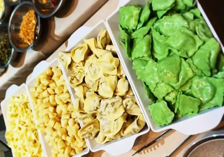 Ravioli Verde com Mussarela de Búfula; Ravioli ll Queijos com Manjericão; Ravioli de Presunto e Mozzarela; Ravioli com lll Queijos; Ravioli de Peito de Peru e Catupiry; Mezzaluna de; Alcachofra; Mezzaluna de Catupiry; Mezzaluna de Provolone; Mezzaluna de Frango com Catupiry; Talharim; Espaguete; Penne Rigate; Capelete IV Queijos; Capelete de Carne; Capelete de Mozzarella e Tomate Seco; Nhoque de Batata; Raviolone de Ricota e Tomate Seco; Raviolone de Ricota e Espinafre; Raviolone de Batata e Cebola Queimada; Raviolone de Berinjela e Ricota; Tortelloni de Abóbora; Tortelloni com Abóbora e Carne Seca.