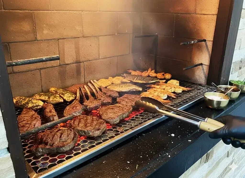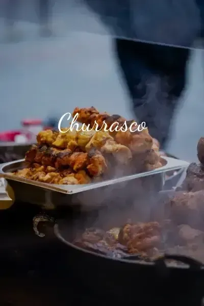 Picanha (Importada); Coração de Frango; Línguiça(Aurora); Alcatra; Maminha; Filé de Saint Peter ; Coxa e Sobrecoxa (Temperada com Mostarda e Hortelã) ; Cupim; Costela Suína.