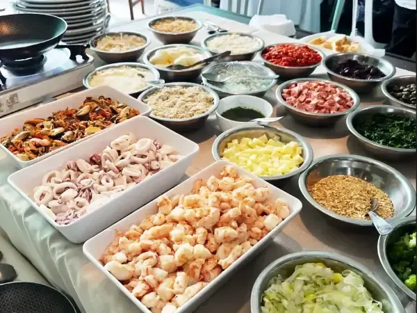 Acréscimo de camarão, lula e marisco – R$ 18,00 por pessoa