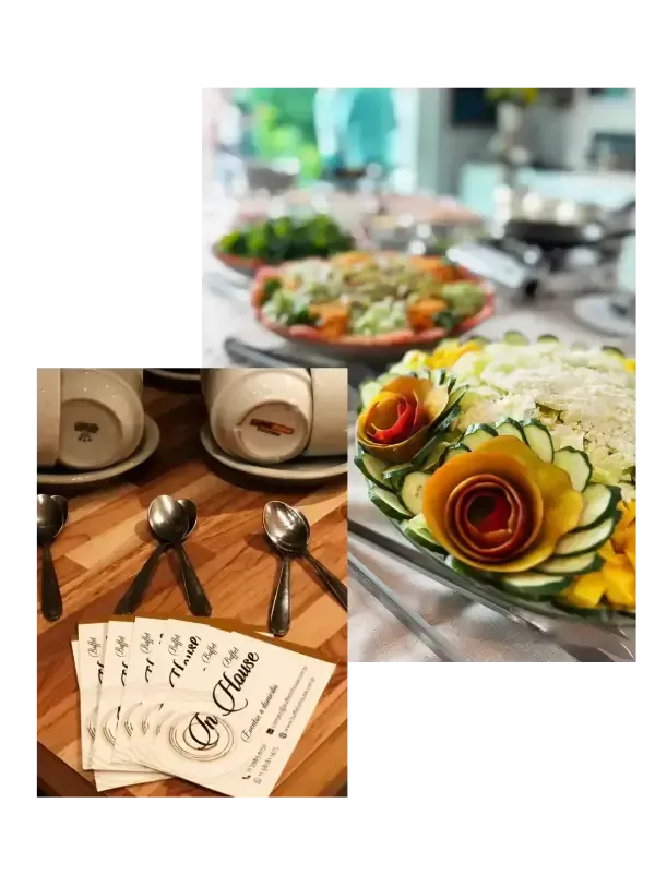 Desde 1998, o Buffet a domicílio in house é a referência em levar praticidade e sofisticação para celebrações exclusivas. Especialistas em eventos a domicílio, entregamos uma experiência gastronômica completa onde o sabor e o requinte se encontram no conforto do seu endereço. Nossa missão é garantir que você seja o convidado de honra em sua própria festa, cuidando de cada detalhe com a excelência de quem domina a arte de receber bem há quase três décadas.